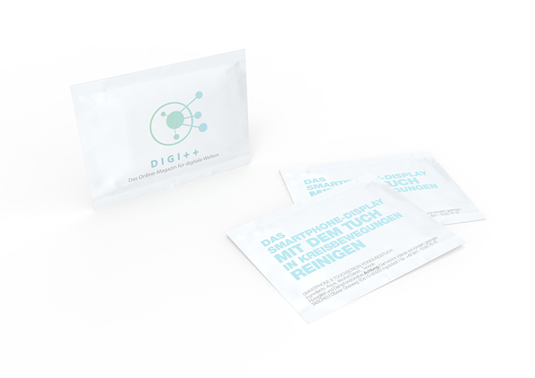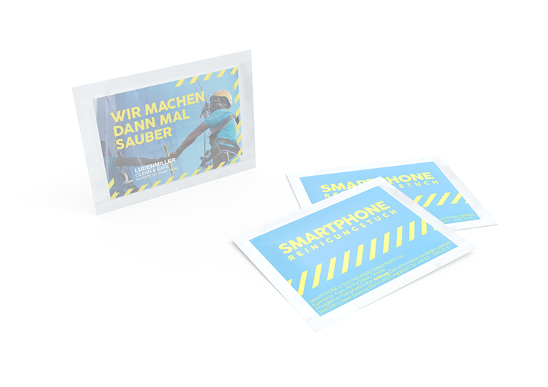 Blitzsauber mit Smartphone & Touchscreen Reinigungstüchern. Platzieren Sie Ihre Werbung auf Reinigungstüchern!